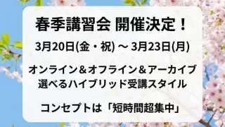 今年の春季講習は、オンライン・オフライン(対面)・アーカイブを自由に選べるハイブリッド形式です 。