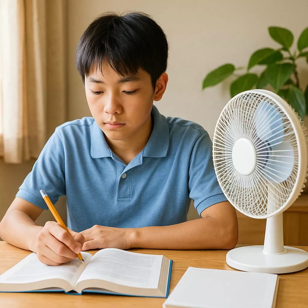 夏の暑さは集中力の大敵です。勉強を始める前に部屋の温度を調整したり、扇風機やエアコンを活用して快適な環境を作りましょう。こまめな水分補給や、涼しさを感じるアイテムを取り入れることで、体への負担を減らし勉強に集中することができます。