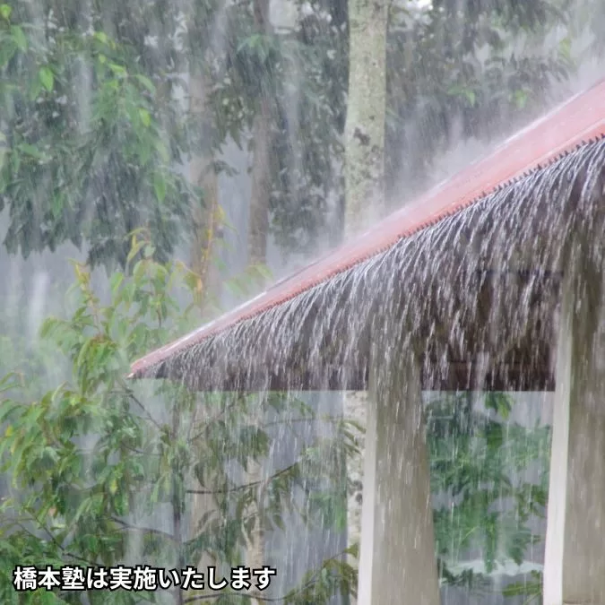 台風21号の影響で、本日および明日は大雨の予報ですが、橋本塾は通常通り実施予定ですので、お知らせいたします。