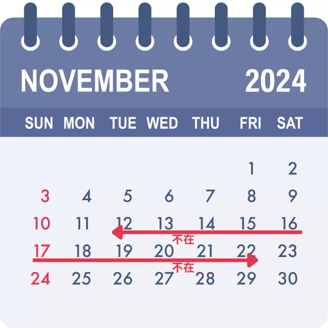 2024年11月中旬の代表不在日のお知らせ